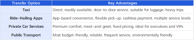 Budget and comfort preferences are key considerations for airport transfer in Singapore. Public transport provides the most cost-effective solution, while taxis and ride-hailing apps offer a mid-range option that balances convenience and price. Travelers seeking premium comfort, especially after long flights or for important business trips, can benefit from pre-booked private car services, which provide reliability, privacy, and a stress-free journey. Matching your comfort expectations with your budget helps guarantee a smooth arrival experience.